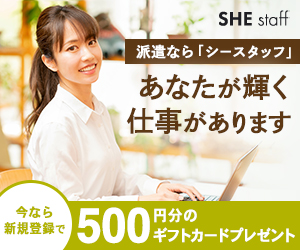 求人サイトの集客バナー(コミュニティスクール「SHElikes」のデザイン課題)です。パッと目を引くコピーと、特典の数字を目立たせることを意識しました。